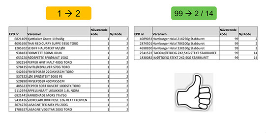 KODE 99 - DELISTET I NG KODE 1 - ANBEFALT KODE 2 - TILLEGG KODE 3 - BREDDE KODE 14 - KJEDESPESIFIKKE PRODUKTER