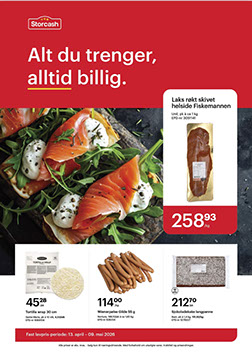 Storcash er Norges største cash & carry-grossist for proffmarkedet fokus i butikk - demo avtales lokalt - beef 150 g / Signature 180 g - STABBURET VEGETARBurger og Nuggets Har aldri noen grossisttilbud, men kjører sin egen kundeavis med fast lavpris + ukens tilbud og ukens tilbud (kun på brobekk) 7 000 7000 medlemmer I Bonusprogrammet