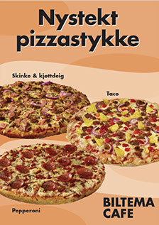 biltema Øke synlighet Stabburet pizza:A4 plakat distribueres til Cafeène mandag uke 18Biltema hamburger:Prosess på ny montering for høst 25