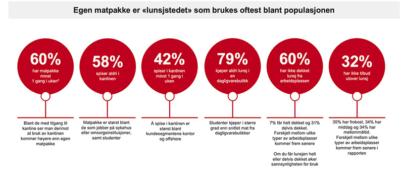 Lunsjvaner blant populasjonen Kilde: Kantar 2020 | Innsiktprosjekt Kantiner: Befolkningen *Kvinner har i større grad med matpakke enn menn