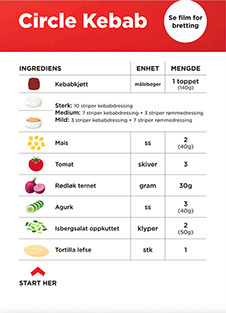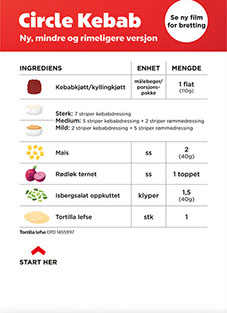 brukes. Merk! 110g kjøtt = et flatt beger Kylling kommer i porsjonspakker​