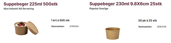 Emballasje til supper, gryter etc