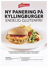 kjøtt & kjøttalternativer - kyllingburger e-kom En crispy burger med biter av ost som gjør den til en smakfull favoritt Den smeltede ost gjør kyllingburgern mer saftig God og sprø panering stabburet Kyllingburger panert 120g