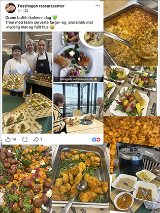 Fosshagen Resurssenter i Lier Jeg har vært med på å servere grønnere proteinrik mat på Fosshagen Resurssenter i Lier, som er ett av mine store produksjonskjøkken. En inspirerende og innholdsrik dag! Her ser dere noen bilder fra dagen, samt plakaten vi laget for å promotere happeningen. Vi serverte: Brasiliansk fiskegryte, Shepherd’s pie, Søtpotet- og grønnkålsalat med vegoboller, Tikka masala-gryte, Mango bowl med kalkunsteaklet, Thailandsk larb, Indisk-inspirert blomkålsuppe med tilbehør, Wrap med vegoboller Elen Mollestad